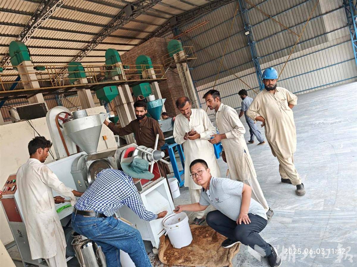 为适配巴基斯坦种植习惯,庆发禾盛自主研发了两款定制化收割设备,实现油菜减损增效。同时根据当地加工习惯,从湖北引入小型榨油设备,方便种植户分散进行油菜籽加工。