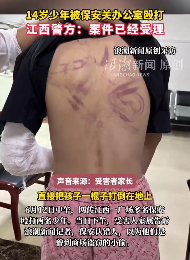 江西宜春的胡女士(化姓)告诉记者,她的儿子和同学被宜春贸易广场多名保安囚禁在办公室进行殴打,时长达数小时,导致其孩子肋骨骨折及多处软组织挫伤。