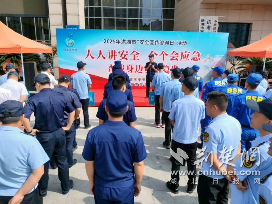 荆楚网(湖北日报网)讯(通讯员 张棋军)6月13日,洪湖市消防救援大队联合市安办各成员单位在市应急局门前广场开展“安全宣传咨询日”活动,市直机关、城区企业代表及社区群众200余人参与。此次活动紧扣“人人讲安全、个个会应急——查找身边安全隐患”主题,通过“看、听、练、问”多维互动,让安全知识入脑入心。