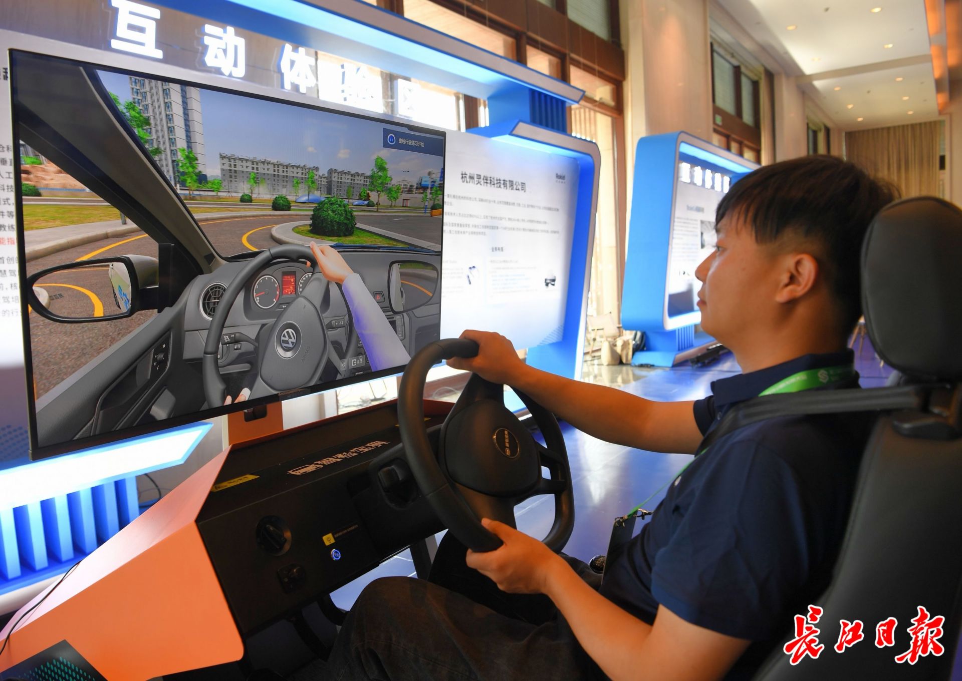 武汉木仓科技股份有限公司展示的智能驾驶模拟器。记者高勇 摄