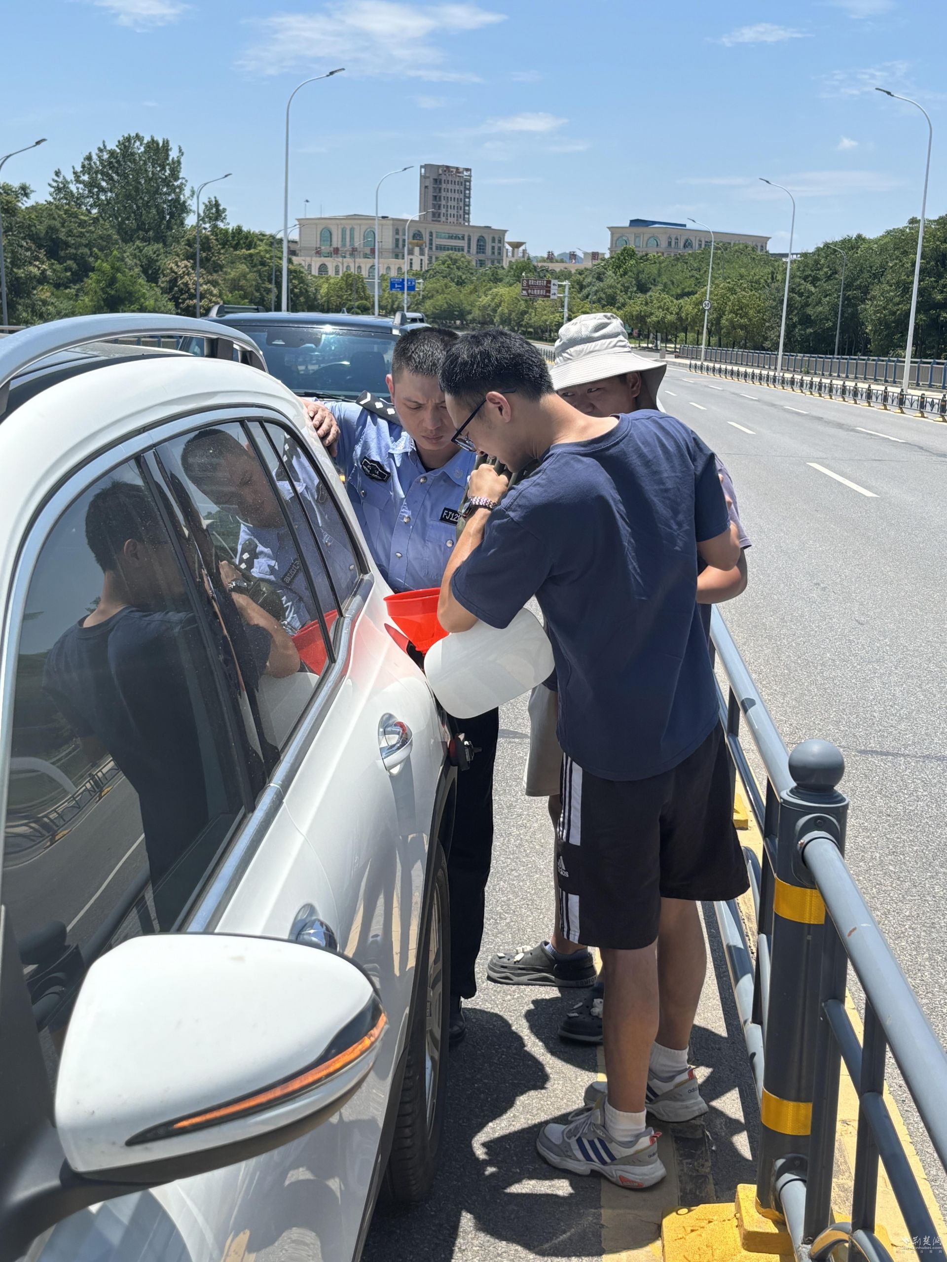 荆楚网(湖北日报网)讯(通讯员 汤文慧 徐菲)6月14日12时,江夏区公安分局交通管理大队藏龙岛中队民警陈吉与辅警常乐巡逻至藏龙二桥时,发现一辆汽车竟停在道路中央,严重影响通行秩序,且存在极大的交通安全隐患。
