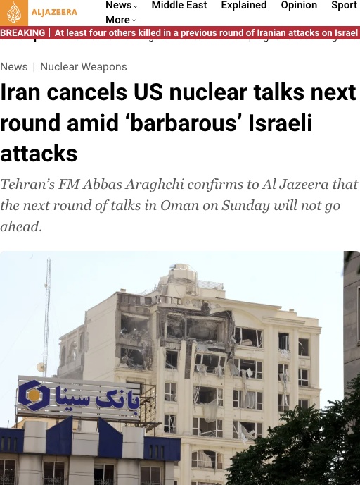 伊朗外交部发言人表示,当前形势下,伊朗重点是“反击敌人的侵略”。他表示,美国抛弃外交和对话途径,支持以色列的侵略行径,包括袭击伊朗民用核设施。在以色列停止对伊朗的侵略之前,与“侵略者的最大支持者和帮凶”进行对话毫无意义。