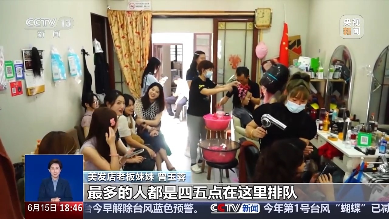 美发店老板妹妹 曾玉蓉:本来是写的是六点开门营业,最多的人都是四五点在这里排队,已经排到马路那边去了,那时候一个早晨都排了五六十名了。