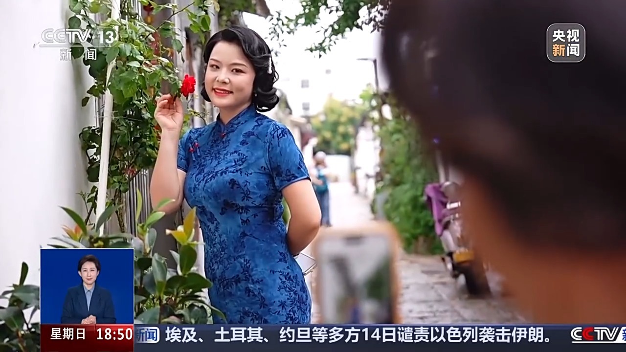摄影店店长 叶小爽:自从“手推波”火了以后,我们团队在苏州多个园林里包括像沧浪亭、虎丘东园和报恩寺,都进行了不同风格的创作。很多客户在逛苏州的时候也更想穿上旗袍,做上妆造,沉浸式游览苏州。每天的拍摄量像去年的话,我们一天最多拍摄量也就是30个,现在的话,我们拍摄量一天要达到70个。
