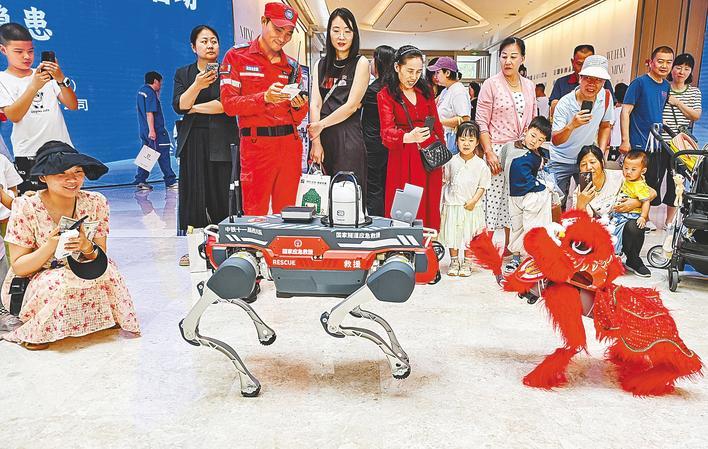 6月15日,湖北省暨武汉市安全生产宣传咨询日在武汉举行,一群身手矫健的“钢铁萌友”——救援机器人,以其炫酷的科技感和强大的功能,点燃了现场气氛,成为“主场明星”。防爆巡检机器人、水上救援机器人、消防灭火机器人等组成的“智能救援天团”集体亮相。曾多次在隧道险情中成功执行任务的救援机器狗尤为引人注目,它不仅能在场上灵活冲刺、完成高难度动作,还能在工作人员的指令下,温顺地俯身与好奇的孩子们互动。