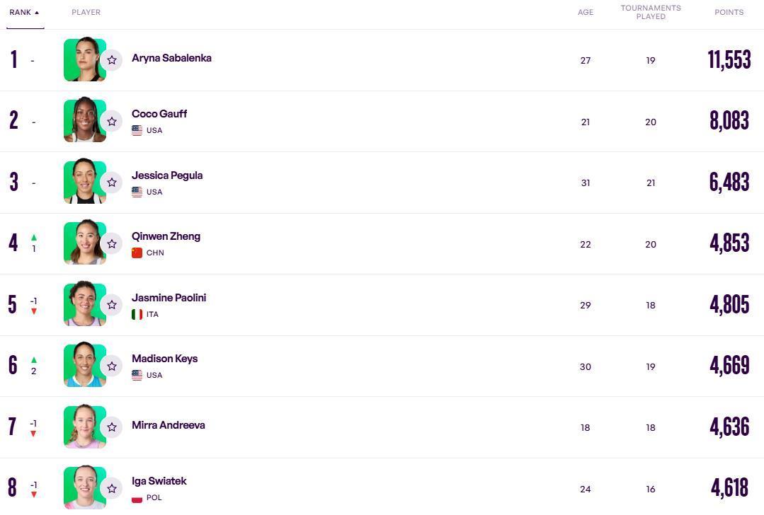 从积分榜上看,紧随郑钦文的有保利尼、凯斯和米拉·安德列娃,分数都在250分以内。因此,即将开赛的WTA500柏林站将是十分关键的一站,柏林站的赛果将直接决定谁可获得本年度第三场大满贯赛事、温网的前四位种子席位。