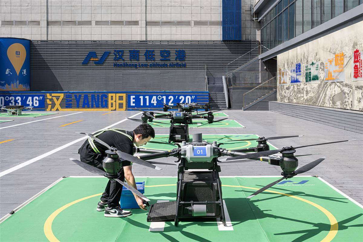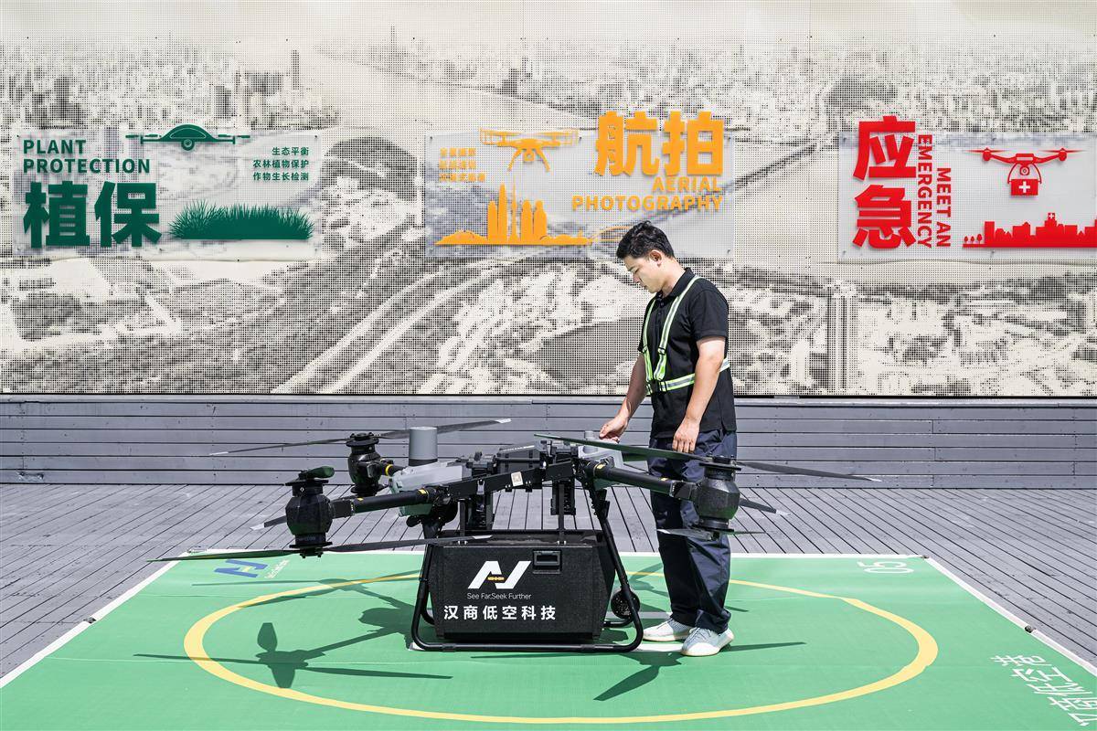 汉商低空港由汉商集团旗下汉商低空科技有限公司建设运营,形成由1个数字化实时调度平台、2个智慧指挥中心、10条低空航线、22个智能停机坪组成的专业化低空物流运营体系。已获批的十条低空物流航线,主要服务于海鲜、鲜切花、医药品等对高时效要求商品的配送和应急保障。(湖北日报全媒记者 任勇 摄)
