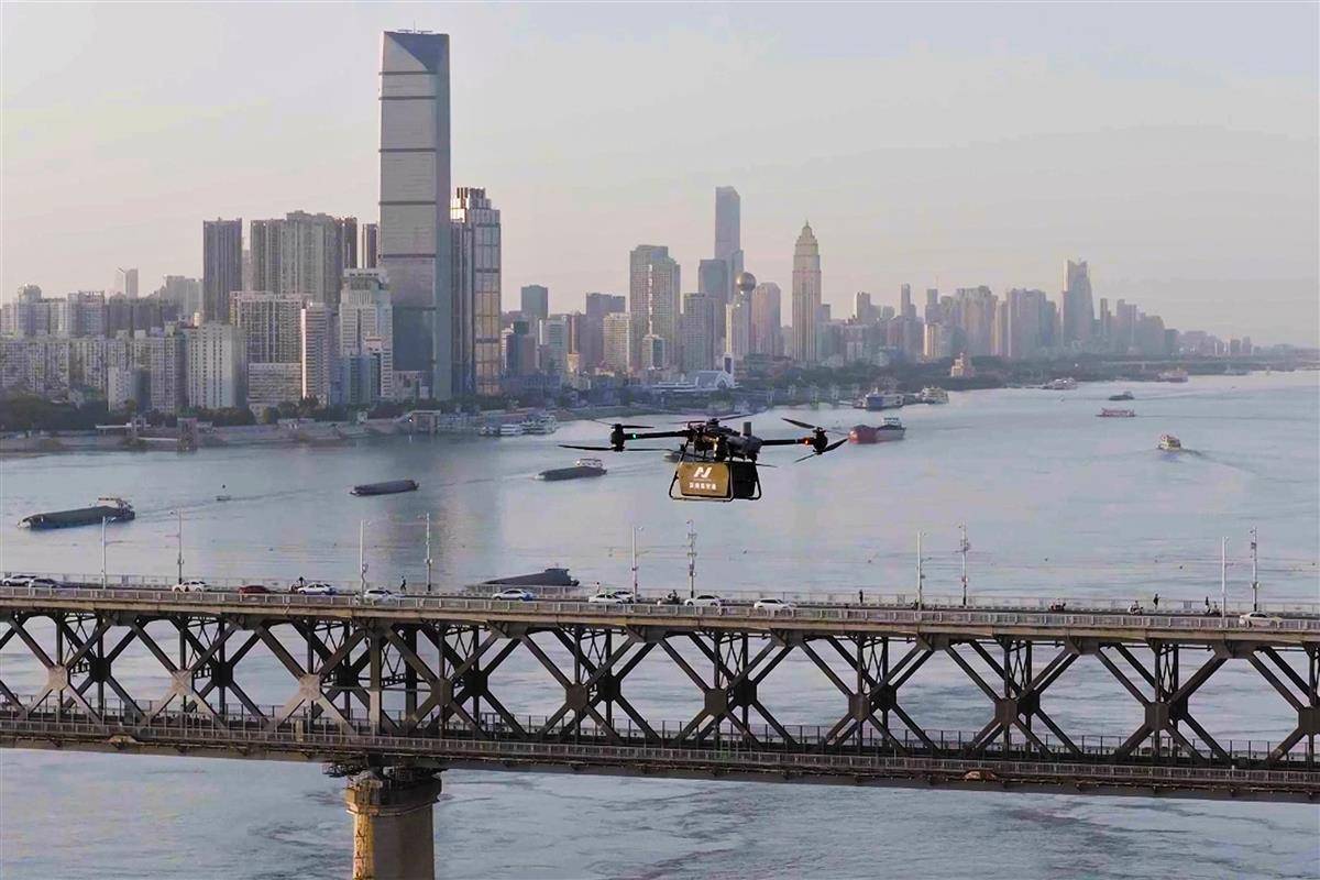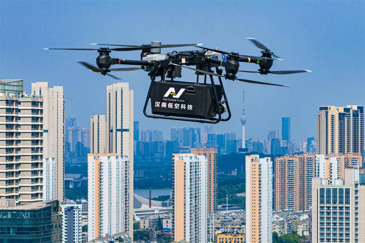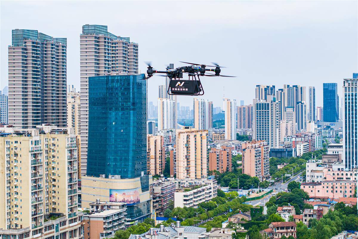6月16日,载有龙虾、鲜花的无人机精准降落在汉商21世纪购物中心楼顶停机位,标志着飞行服务航线覆盖武汉三镇的汉商低空港正式投入运营。