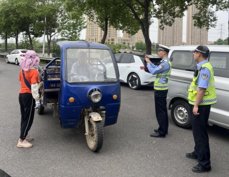 在执法过程中,蒋仲超始终坚持“法理情”相融合。他说,每一次执法,不仅是法律的执行,更是对群众的教育和关怀。2024年10月,蒋仲超在中州转盘查处了一辆违规三轮车,当时车上坐着两位老人。他在依法开具罚单后,考虑到老人行动不便,他用警车将两位老人送回家。
