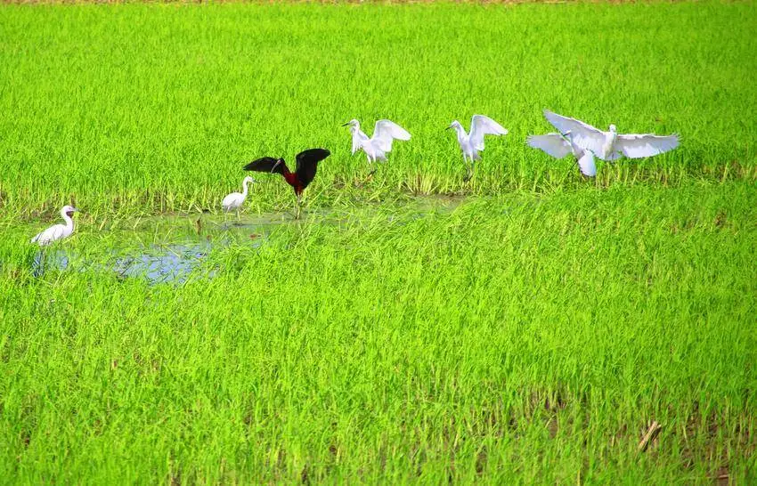 “彩鹮在朱湖的种群扩张并非个例,全国多地都观测到其分布正稳步恢复。”湖北省野生动植物保护站相关负责人陈芬说,“这一趋势与我国湿地保护网络的完善密切相关,朱湖所处的江汉平原湿地群,正成为连接南北迁徙通道的关键节点。”