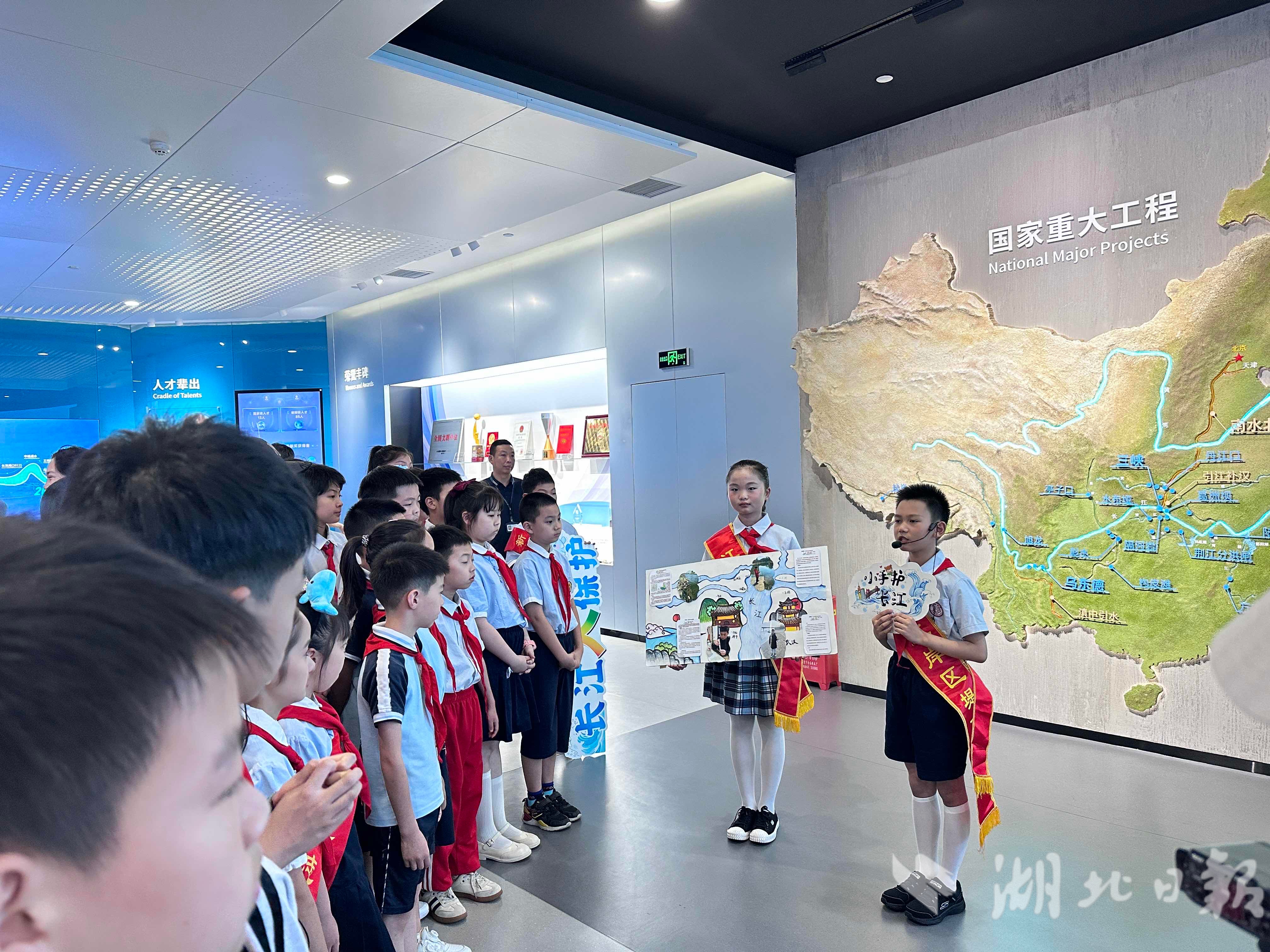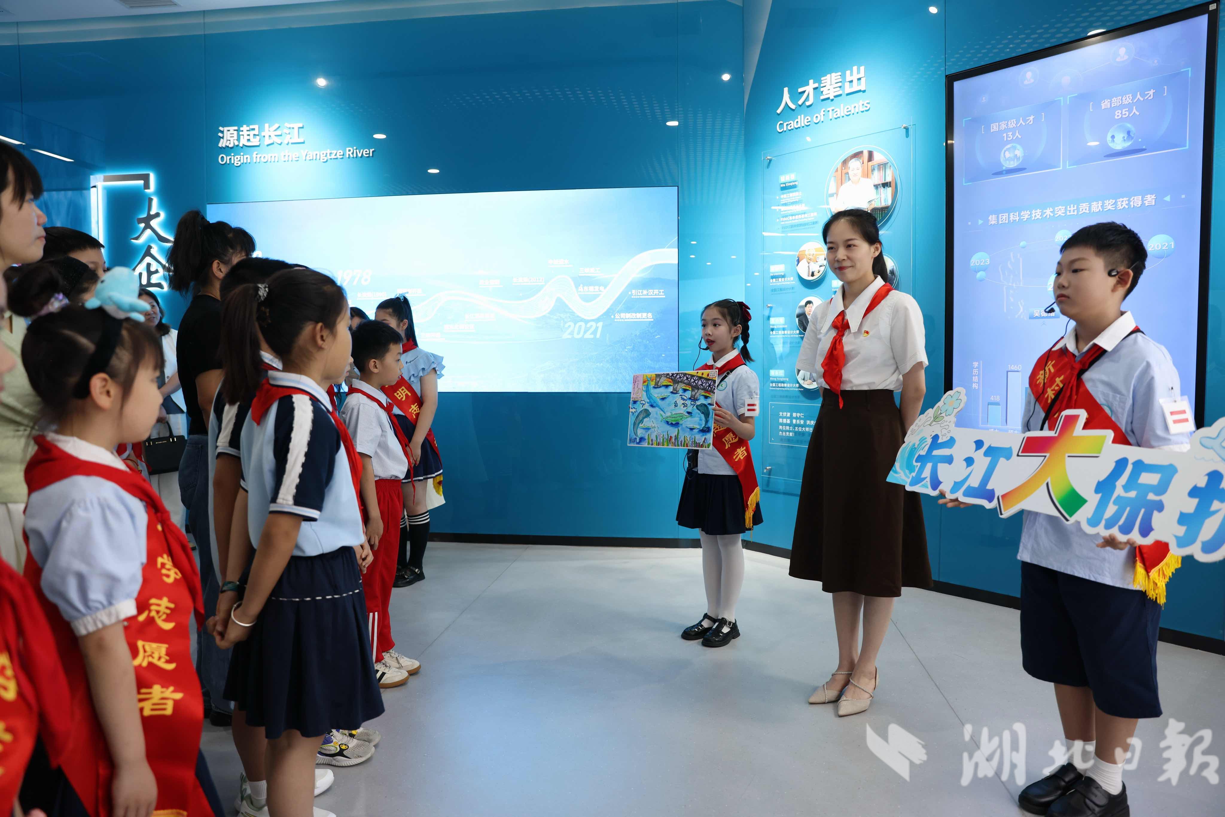 湖北日报讯(记者张倩倩、通讯员郑作鹏、沈丽莎、实习生文新颖)6月15日,水利部长江水利委员会“长江水利设计展馆”大厅内,稚嫩而坚定的讲解声此起彼伏。这是江岸区11所中小学联合开展的“江岸之光”百场主题班会之一,孩子们用独特的方式,把思政课堂“搬”到了母亲河畔。