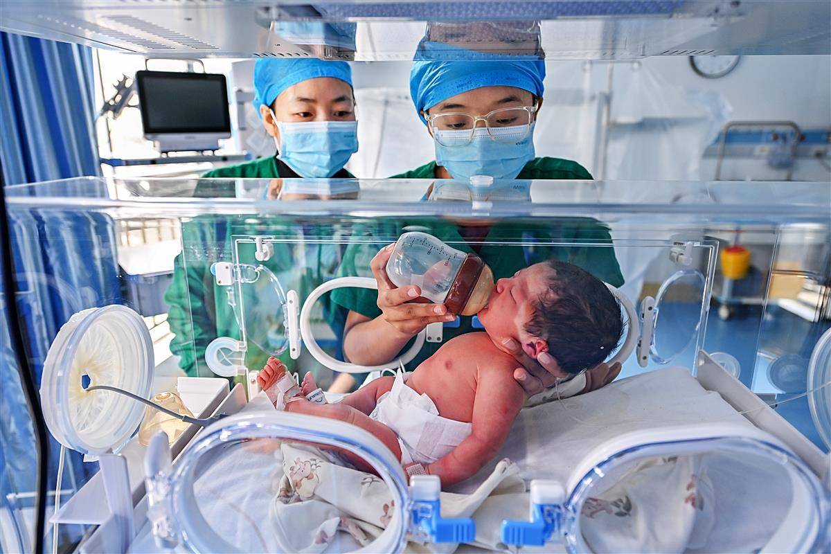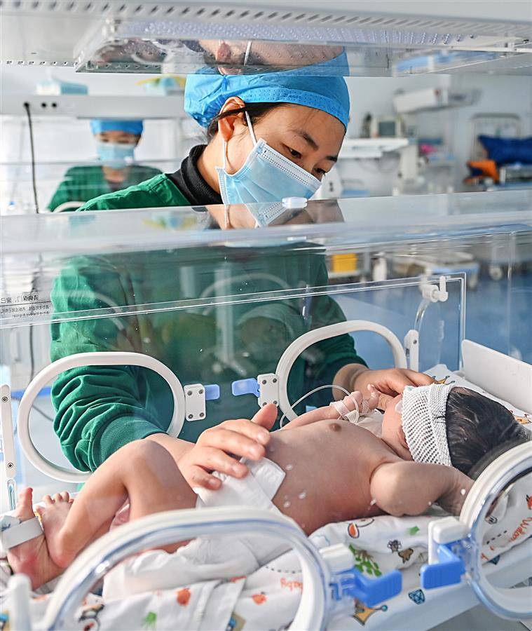 5月26日,湖北援藏医生在山南市妇幼保健院护理患者。