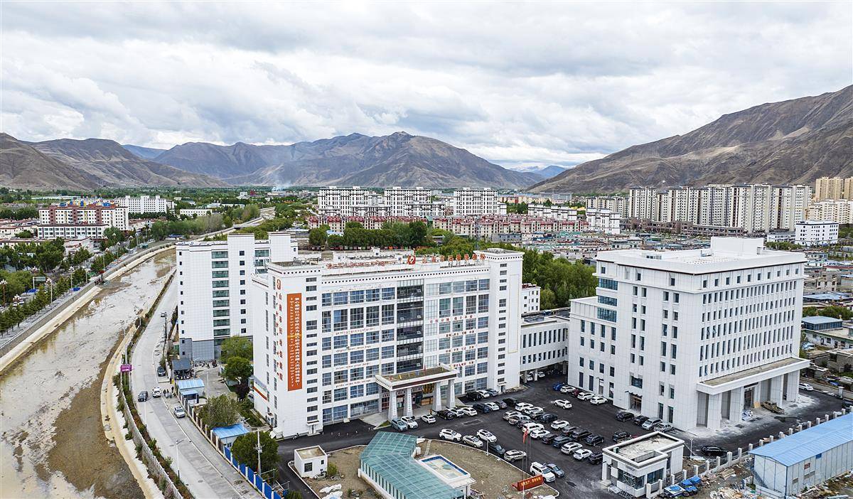5月26日,鸟瞰湖北民生援藏重大项目——山南市妇幼保健院综合业务大楼项目,目前,大楼的室内装修已进入收尾阶段。