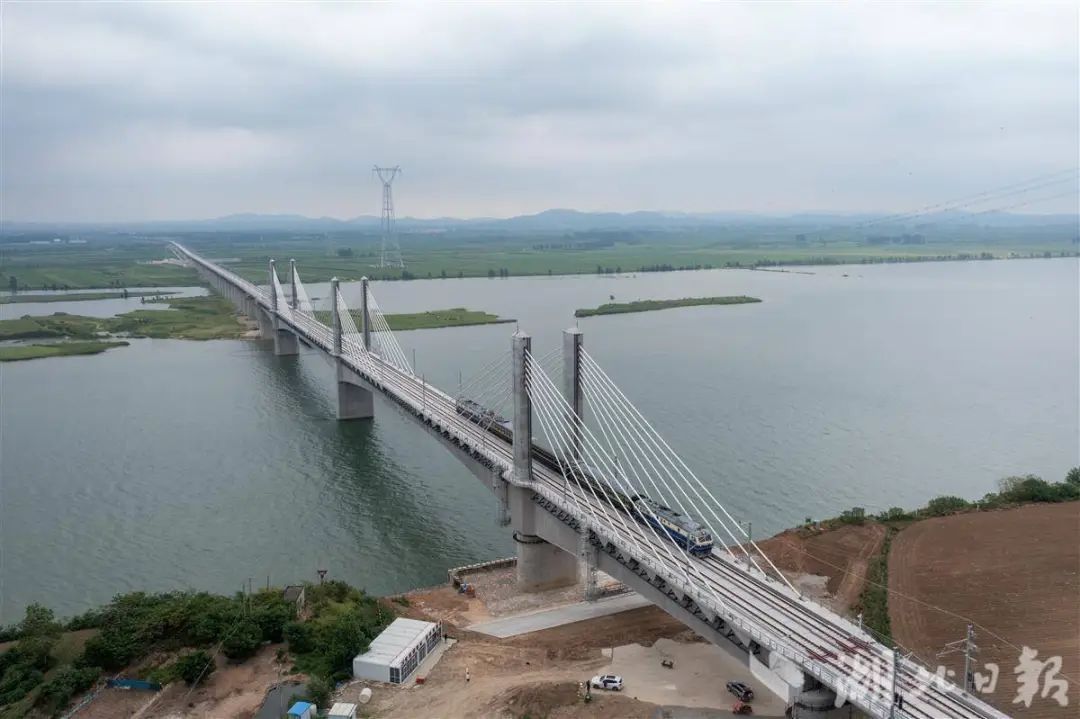 图为6月18日,检测列车55163次通过襄荆高铁宜城汉江特大桥。(李垚骏 摄)