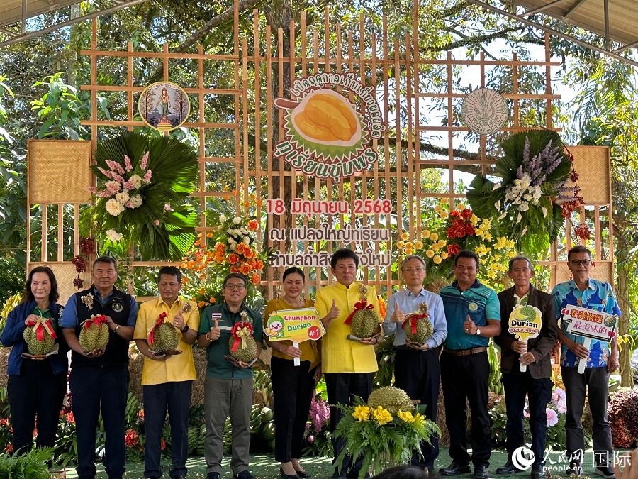 人民网春蓬6月18日电(记者孙广勇)6月18日,泰国南部春蓬府举办榴莲节。在位于春蓬府塔星镇的榴莲园,春蓬府府尹天猜和中国驻宋卡总领事汪志坚共同砍下了收割榴莲第一刀,开启2025年榴莲收获季。此次活动由春蓬府农业局主办,2025年榴莲采收季启动仪式包含首颗榴莲采收、榴莲及相关产品品尝展销会等,以展示春蓬特色产品,向商家、投资者和游客展示春蓬榴莲的优质形象和产业潜力,增强市场信心。