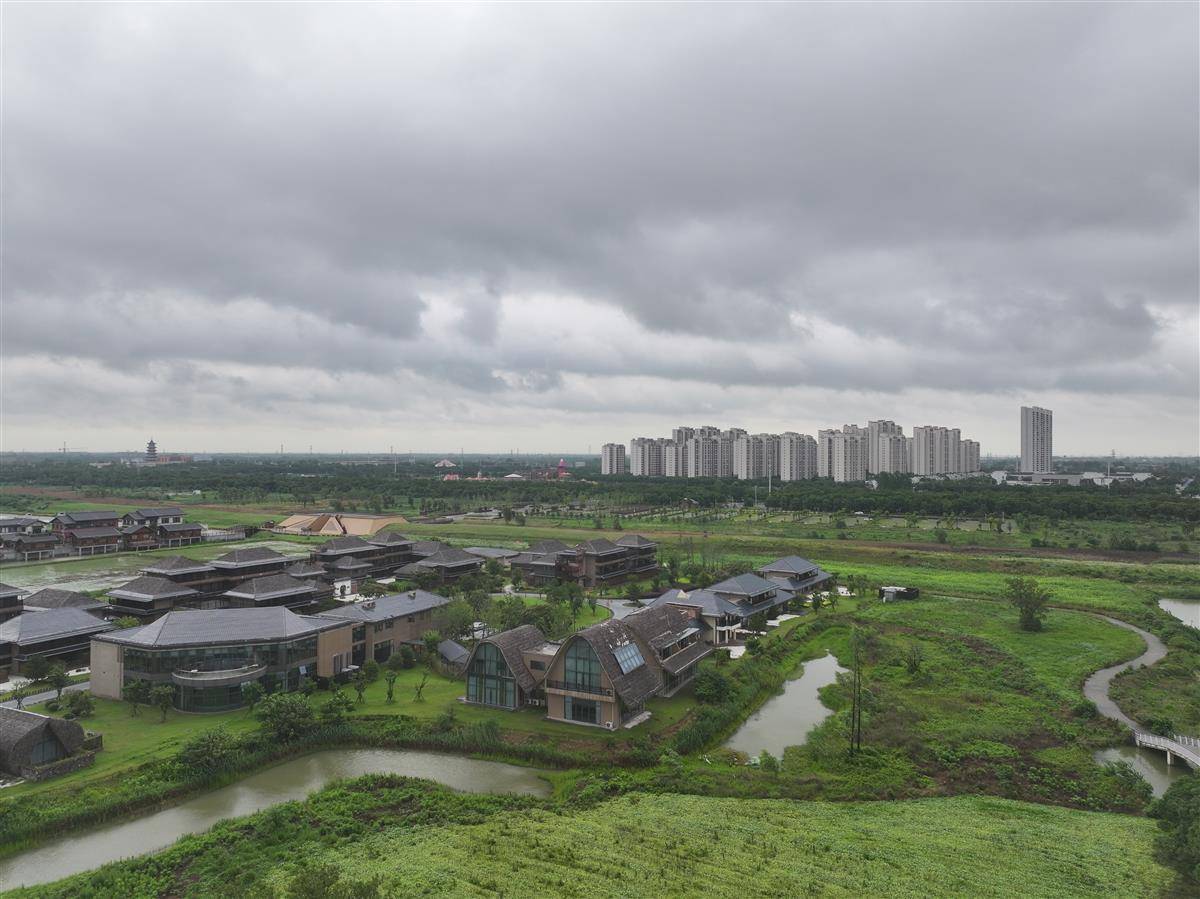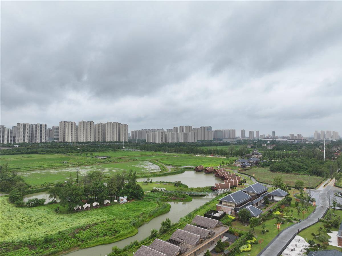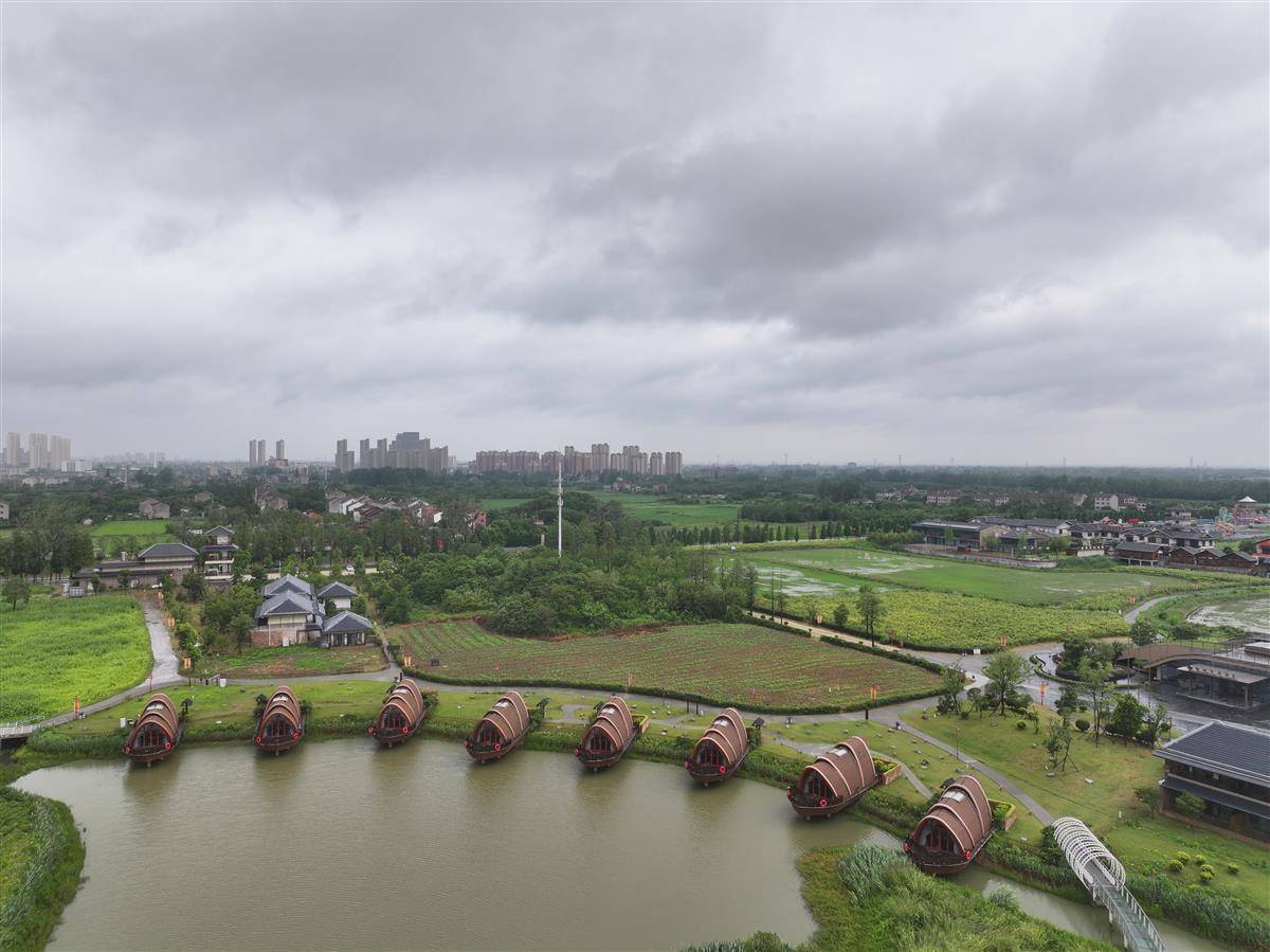 6 月 19 日,梅雨笼罩下的荆州古城诗意朦胧,纪南生态文化旅游区的郢城文化园在细雨中宛如水墨画卷。雨滴轻叩青瓦飞檐,秦汉建筑依水而立,农田丘陵在烟雨中若隐若现,“一畦春韭绿、十里稻花香” 的意境在此鲜活呈现。(湖北日报全媒记者 刘曙松 摄)