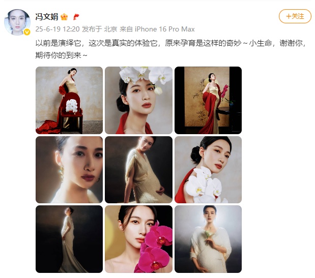 今天(6月19日),演员冯文娟更新社交平台,官宣怀孕了。