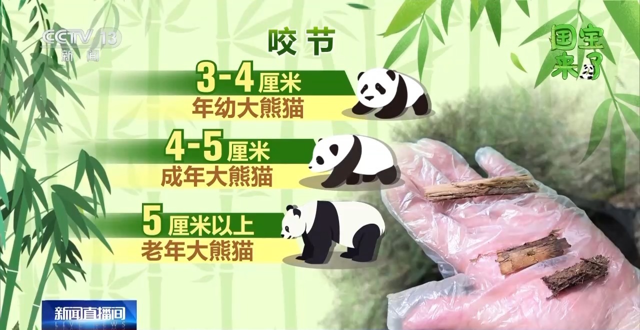 大熊猫的粪便里藏着什么秘密?答案是咬节。大熊猫吃竹子,咬下竹节,消化后排出粪便,其中通常残留有小竹节。不同年龄的大熊猫咬出的竹节长度、形状也各不相同。通过测量这些小竹节,就能判断大熊猫的个体特征。一般3厘米至4厘米的咬节可以判断是年幼大熊猫,4厘米至5厘米的为成年大熊猫,5厘米以上的为老年大熊猫。