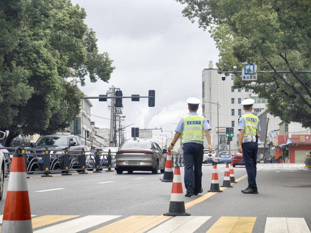 △随州交警在城区各考点周边清理违停车辆,摆放水马、锥桶和警示标牌,指挥车辆有序进出和停留,耐心引导车辆绕行,全力净化考点周边道路交通秩序。