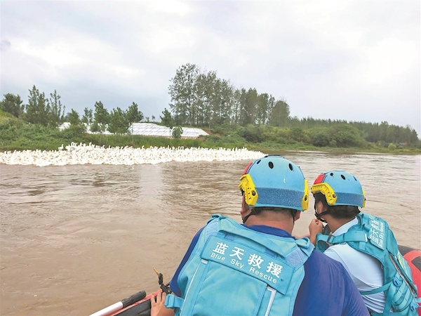 蓝天救援队成员帮忙赶鹅上岸 受访者供图