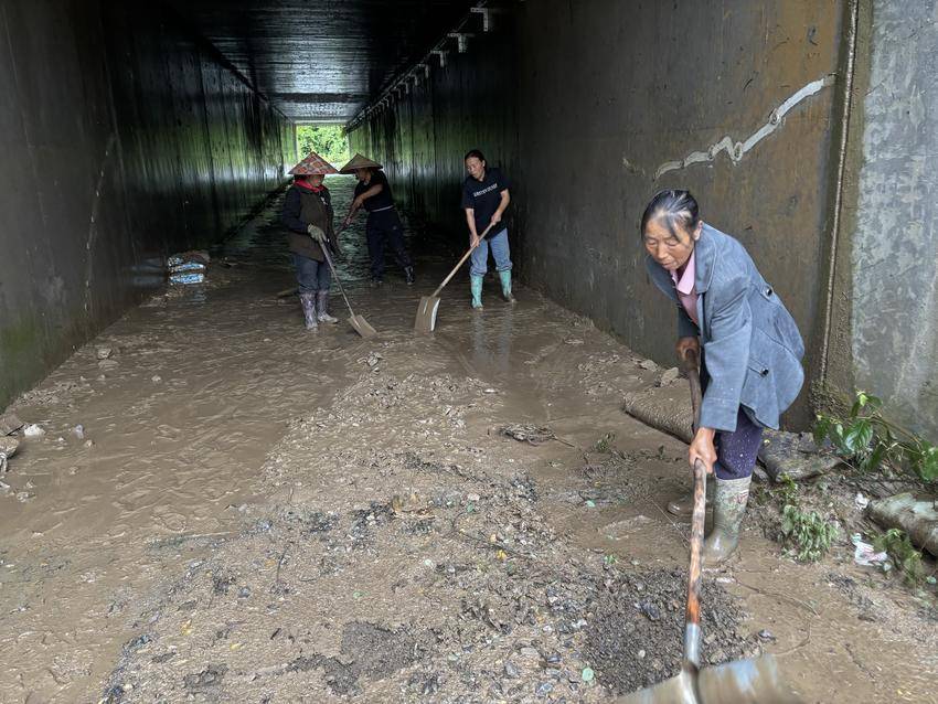 雨势刚歇,洞长湾村便涌动着热火朝天的清淤场景。村民们手持铁锹,浑身沾满泥浆,干劲却丝毫不减。