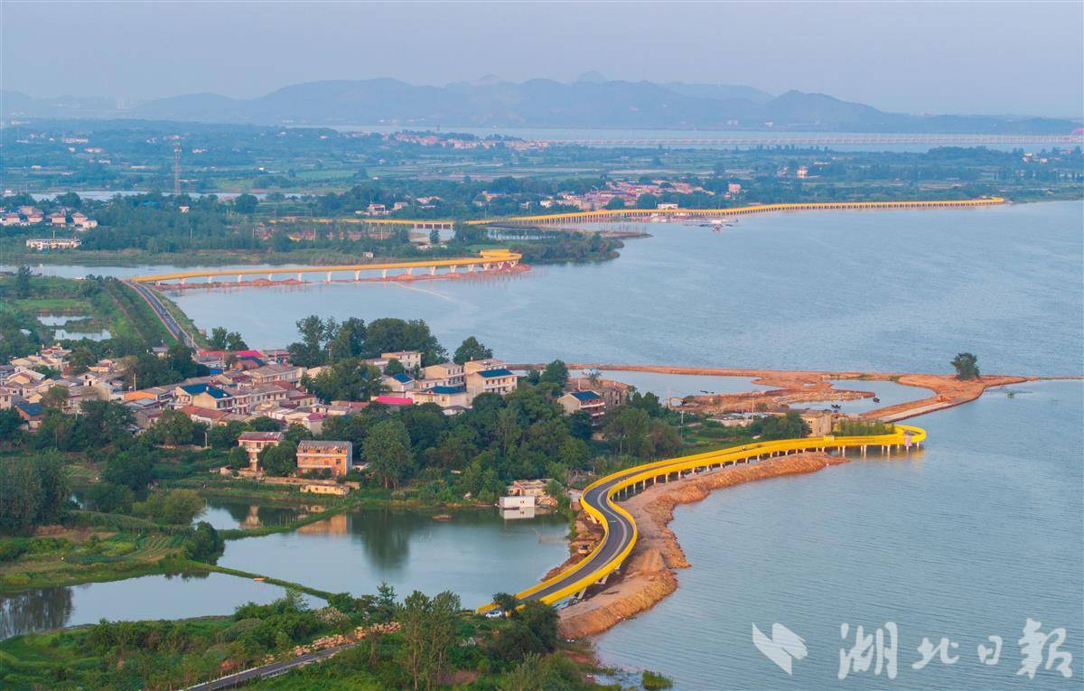 6月18日,鸟瞰建设中的大冶湖北岸生态绿道。