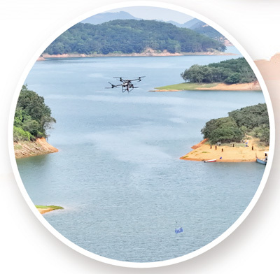 广东茂名高州市平山镇湾边岛,无人机在运荔枝。 钟志辉摄(人民视觉)