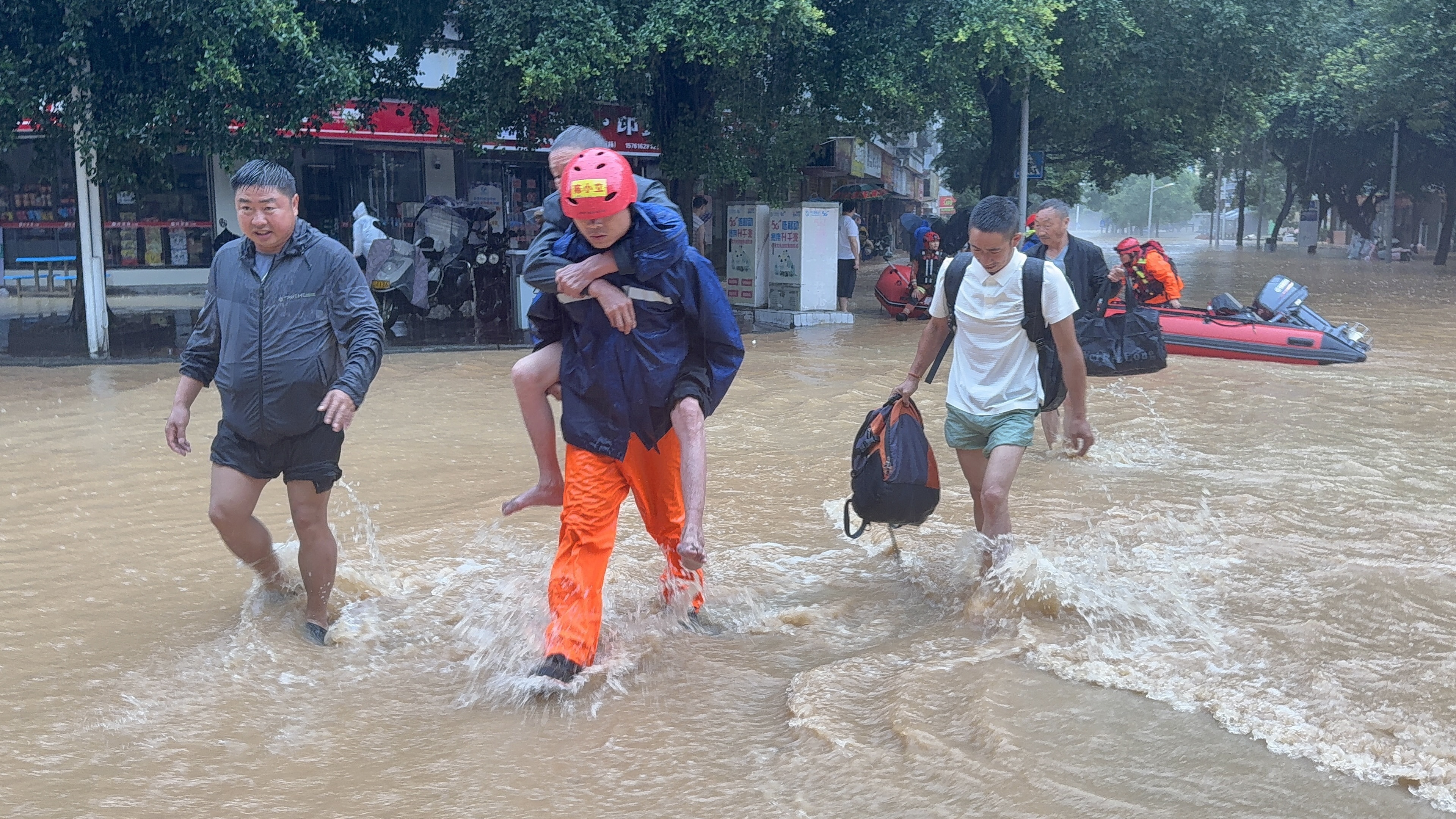 6月24日,受持续强降雨及上游来水叠加影响,贵州省黔东南州榕江县境内平永河、寨蒿河、都柳江水位持续快速上涨,遭遇特大洪水,县城多处低洼地带被淹。