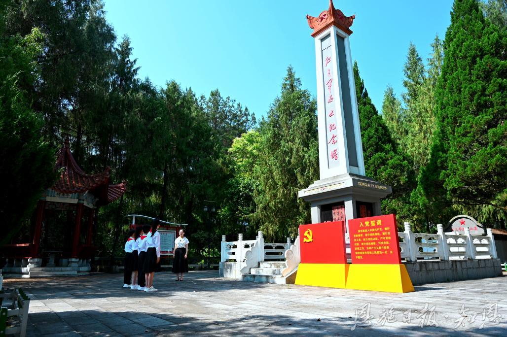 在红三军革命旧址群,每一处战斗遗址、纪念碑、故居旧址,都是一部亲历、见证百年荣光的“活党史”。金果坪乡全面调查、摸底各个历史时期的红色资源、英雄事迹,挖掘、整理红色故事,成立“红星闪闪”红色故事讲解志愿服务队、“小小解说员”青少年社团,志愿者、学生利用业余、课外时间到红三军烈士陵园,为到访游客提供解说志愿服务。