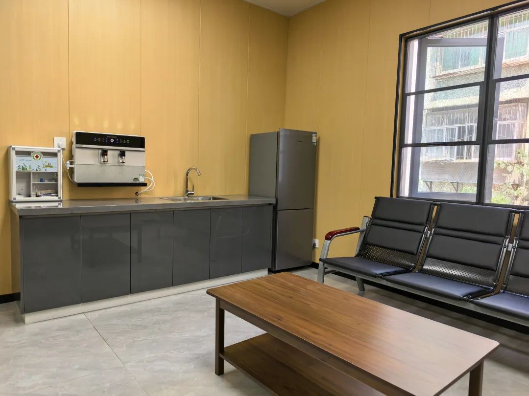 步入其中,随处可见现代科技与人文关怀交融的细节设计,第三卫生间、婴儿护理台等便民设施一应俱全。令人眼前一亮的是,公厕旁创新配套的城市服务驿站:冰箱、饮水机、医药箱等设备一应俱全,让城市工作者有了舒心的“充电站”。