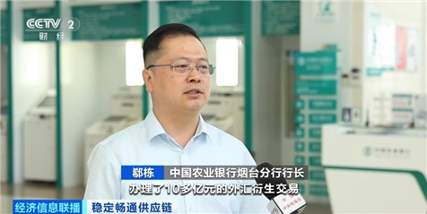 中国农业银行烟台分行行长 郗栋:到今年5月末,我们已经为近60家企业办理了10多亿元的外汇衍生交易,同比增长了23%,我们推广了很多个性化、差异化的产品,有效帮助企业规避了市场波动风险。