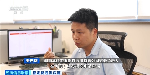 湖南某精密零部件股份有限公司财务负责人 裴忠格:我们拿到电子债权凭证以后,立马能够向银行提交申请,10分钟左右资金就能够到我的账上,拿到现金以后,我可以用于日常的生产经营并发工资,也可以进行生产设备的购置。