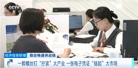 总台央视记者 鞠亚倩:电子债权凭证可以比喻成“交付证据”,供货商交货后,采购的核心企业便会开具这张凭证。供货商可以通过这张凭证,基于真实、可靠的交易数据、交易信用,向银行金融机构申请相应资金贷款,一张凭证变为一笔钱,让金钱注入流动,下一轮订单生产便可以如期进行。