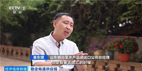 山东烟台某水产品进出口公司总经理 姜东锋:5万美元折合人民币相当于三十五六万元,汇率涨的话我能保持这个收益,汇率跌的话我也能保持收益,这是对我们小微企业一个很大的帮助。