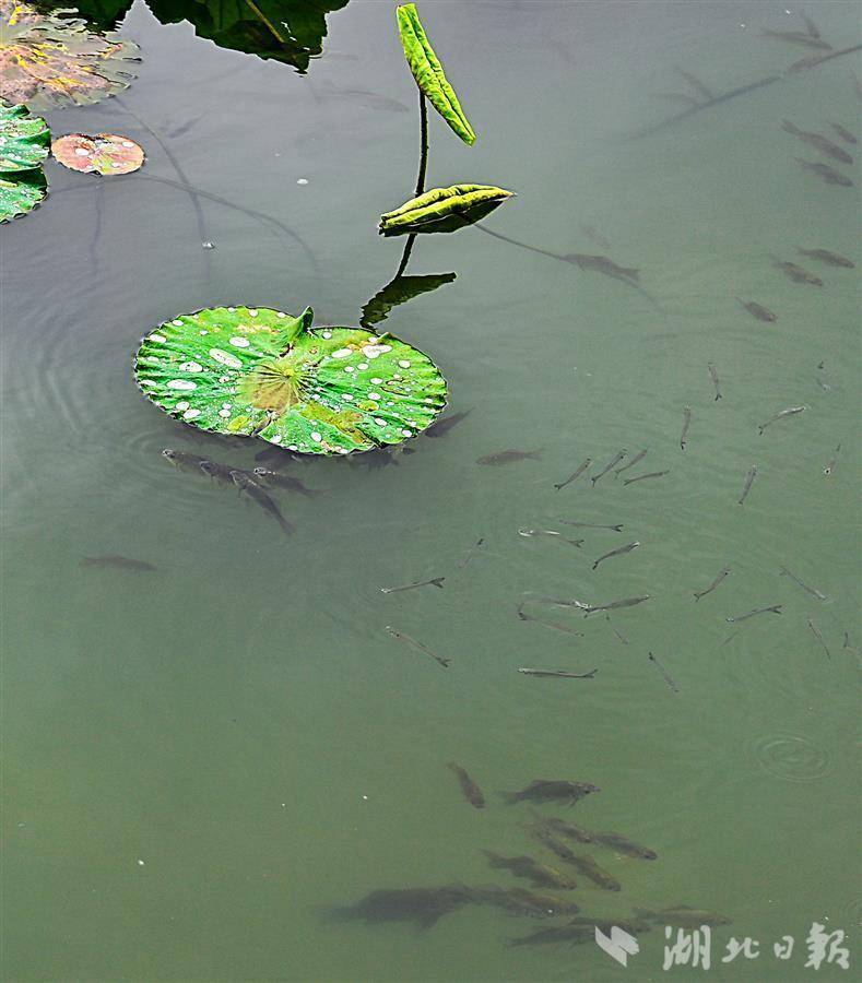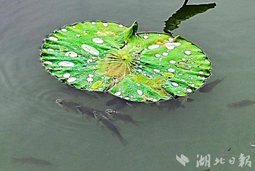 6月26日下午,武汉梨园广场边的东湖里,长满了又大又圆的荷叶,目前,荷塘里已经盛开了荷花,小鱼在荷叶下面欢乐地游来游去,美丽的荷花也带来阵阵幽香。(湖北日报全媒记者 朱熙勇摄)