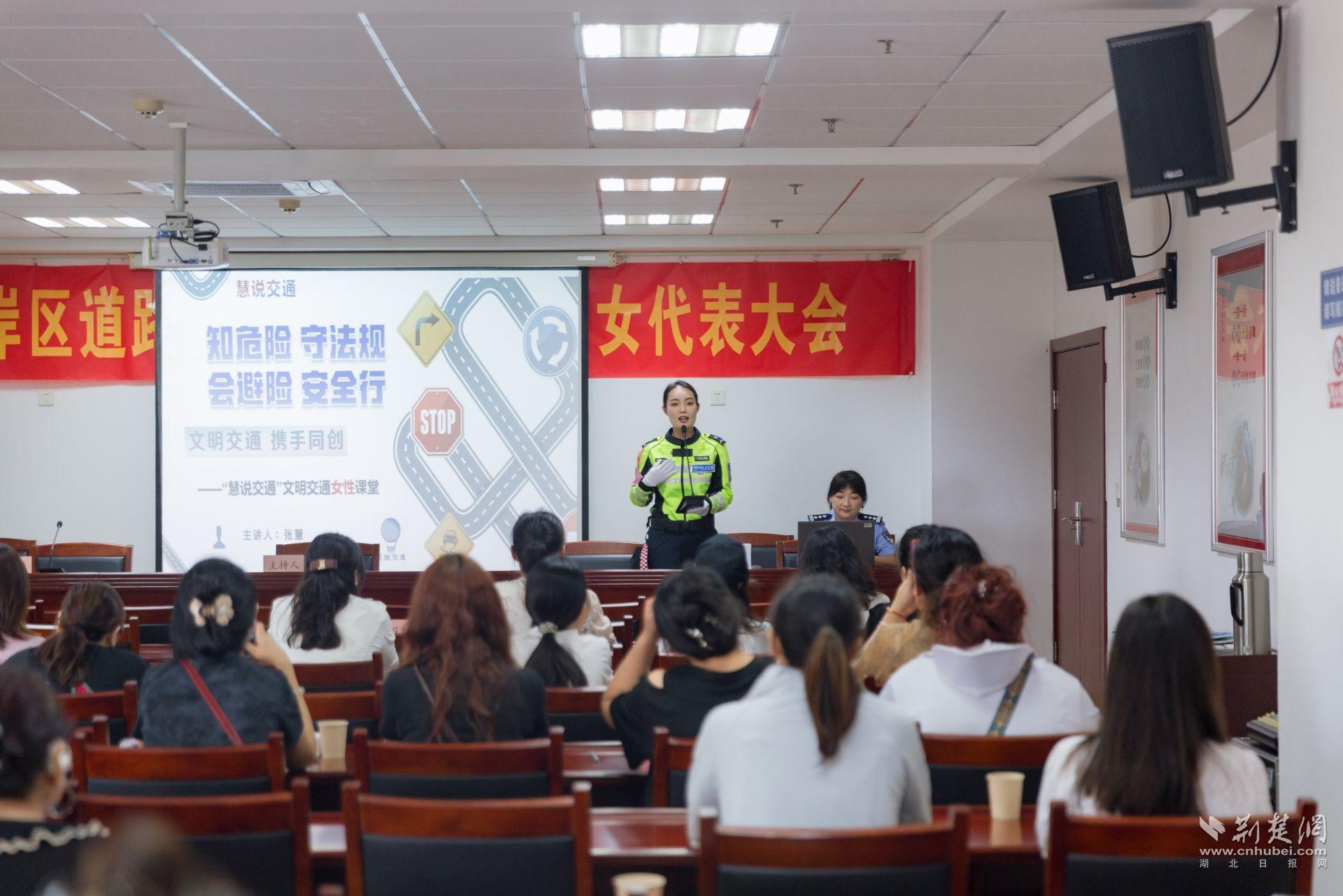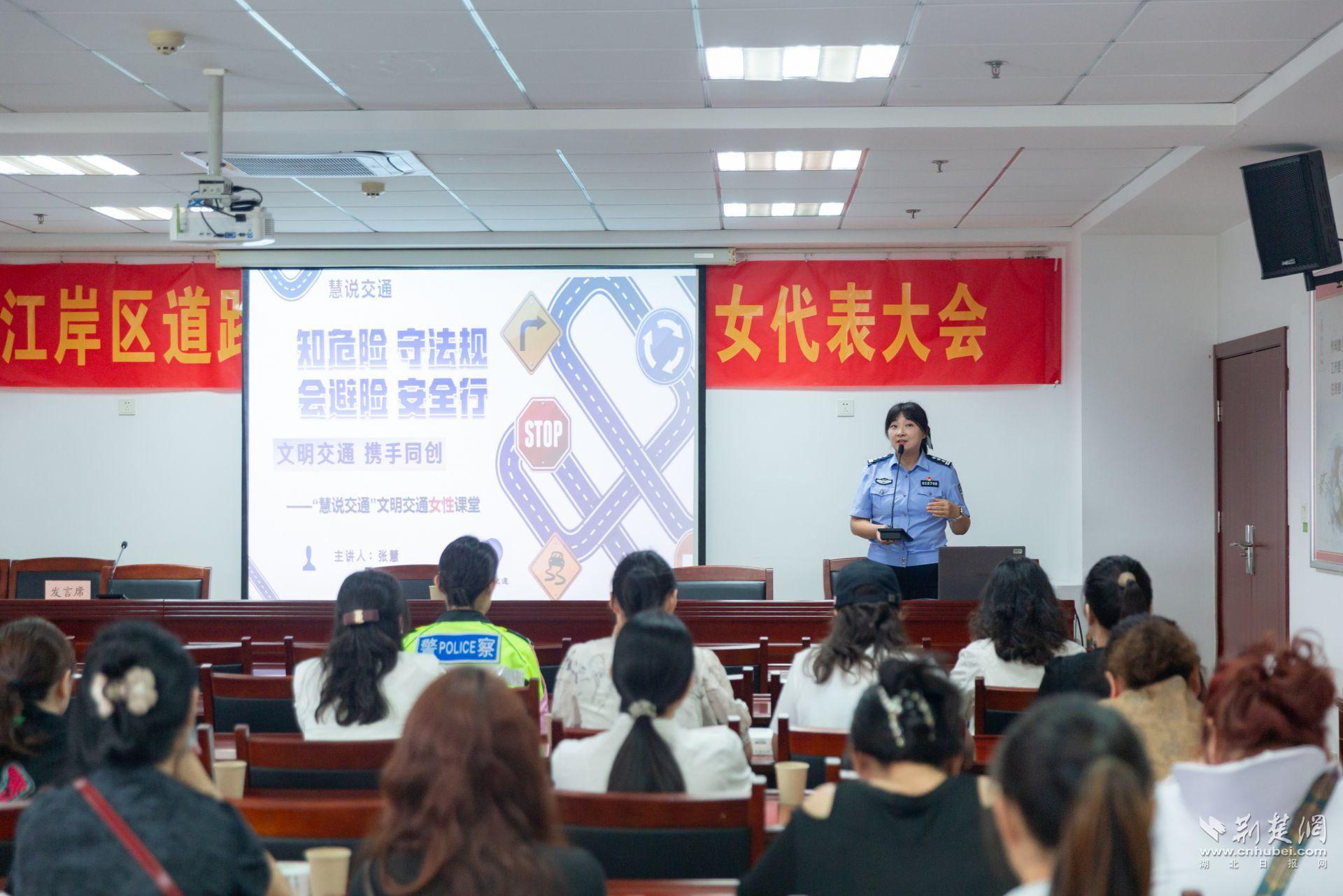 荆楚网(湖北日报网)讯(记者 白云 实习生 王玉林 通讯员 张慧 肖俊)六月安全月,安全宣讲正当时。近期,江岸区道路运输行业第一次妇女代表大会成功召开,凝聚起行业内女性力量。武汉江岸交警积极响应,充分发挥职能作用,依托“慧说交通”这一经典品牌持续为各类人群普及交通安全知识的经典宣传品牌,面向道路运输行业女性职工,精心打造“慧说交通”交通安全宣传女性微课堂,在关爱女性身心健康的同时,推动文明交通理念深入人心。