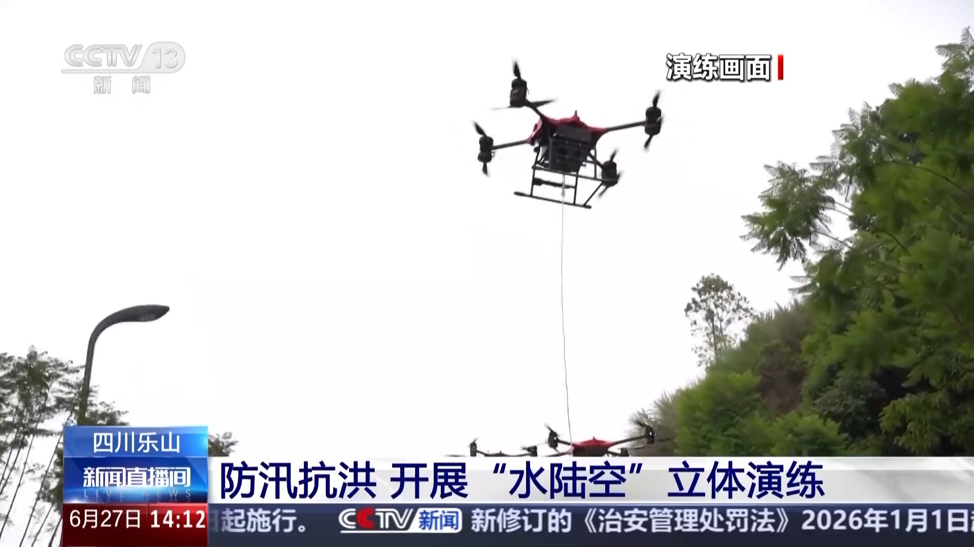 为充分做好防汛抗洪准备,日前(25日),四川消防部门在乐山市开展了一场“水陆空”立体防汛抗洪演练。