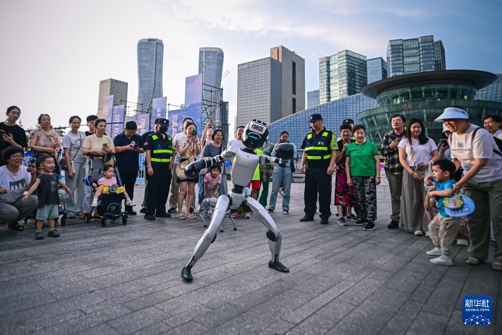 6月27日,市民在2025杭州奇妙夜活动主会场观看人型机器人表演。