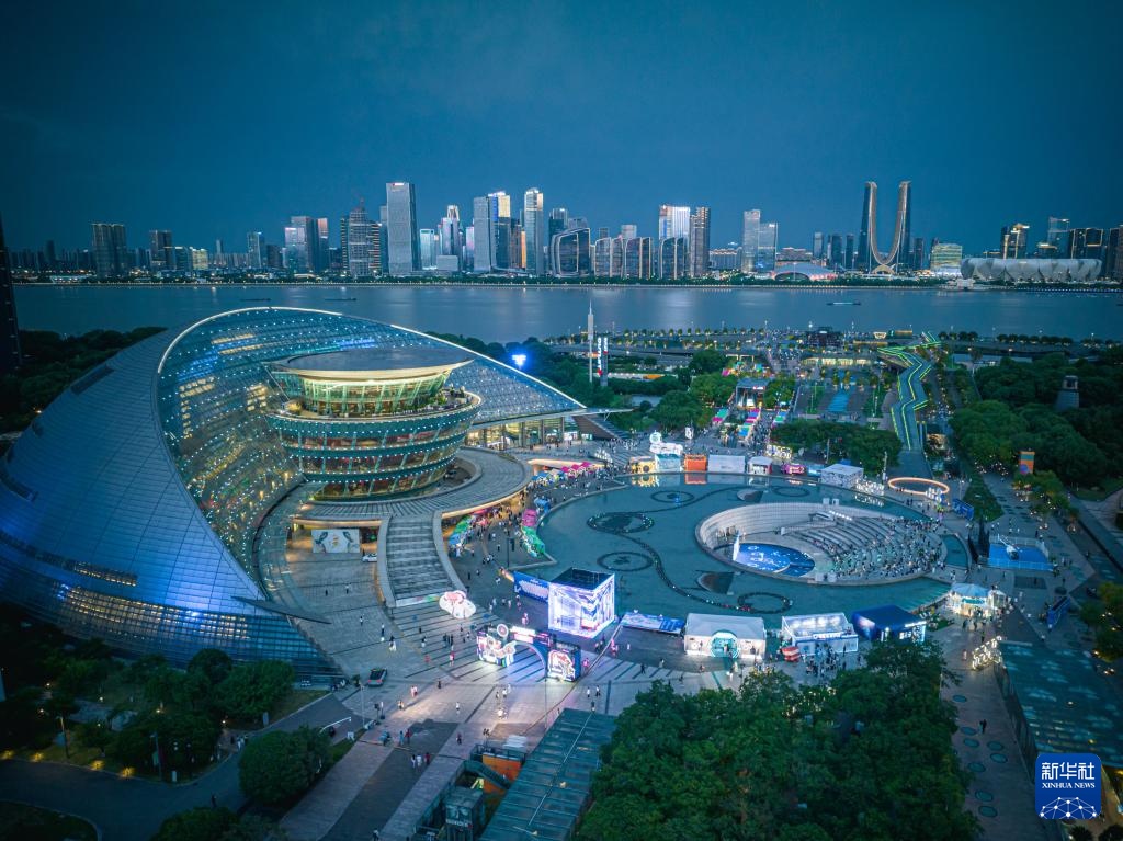 6月27日拍摄的位于杭州市上城区钱江新城的2025杭州奇妙夜活动主会场。
