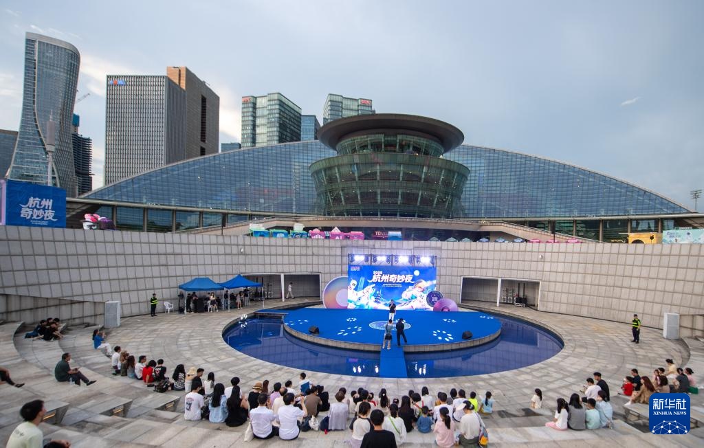 6月27日,市民在2025杭州奇妙夜活动主会场欣赏文艺表演。