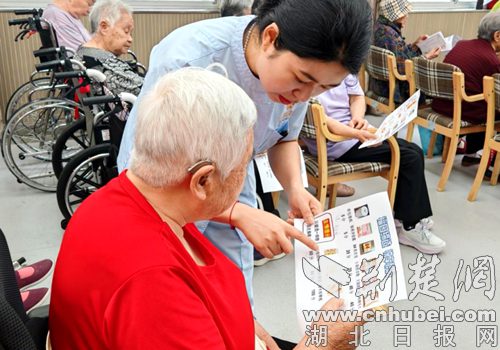 工作人员为老人讲解“福园缔造 悦享积分”规则。通讯员供图