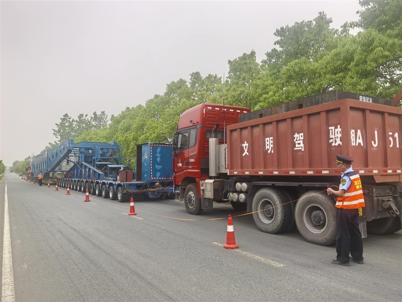 运输过程中,省交通运输综合行政执法局深化“高速+地方”联动机制,联合公安交管等部门全程护航,累计调集地方和高速3个交通运输执法机构执法人员280人次、执法车辆84车次,实时开展通行引导、安全警戒,并妥善处置各类突发状况。每趟运输结束后,及时总结复盘,与各方沟通反馈,动态优化保障措施;同时密切跟踪企业后续计划,结合路况、天气等因素灵活调整运输方案,确保运输安全高效。