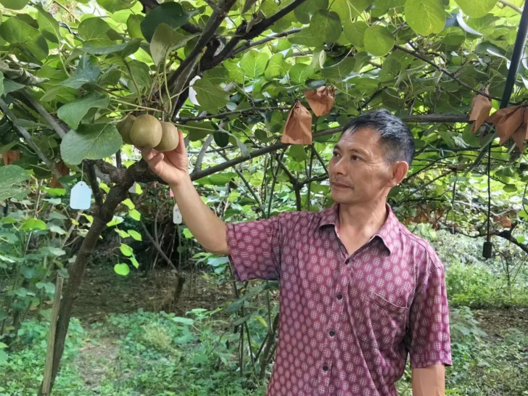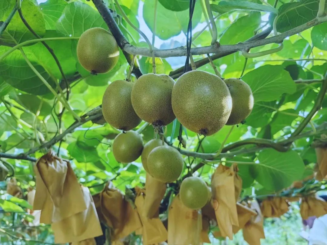 在田里,金卫小心翼翼地给每个猕猴桃套上土黄色纸袋,“等待淀粉的积累”。金卫说,果实在快速地长大,害虫和小鸟都早已虎视眈眈。“套袋”能让果实甜度增高,风味品质形成,“种猕猴桃就跟养子女一样,要小心呵护。”