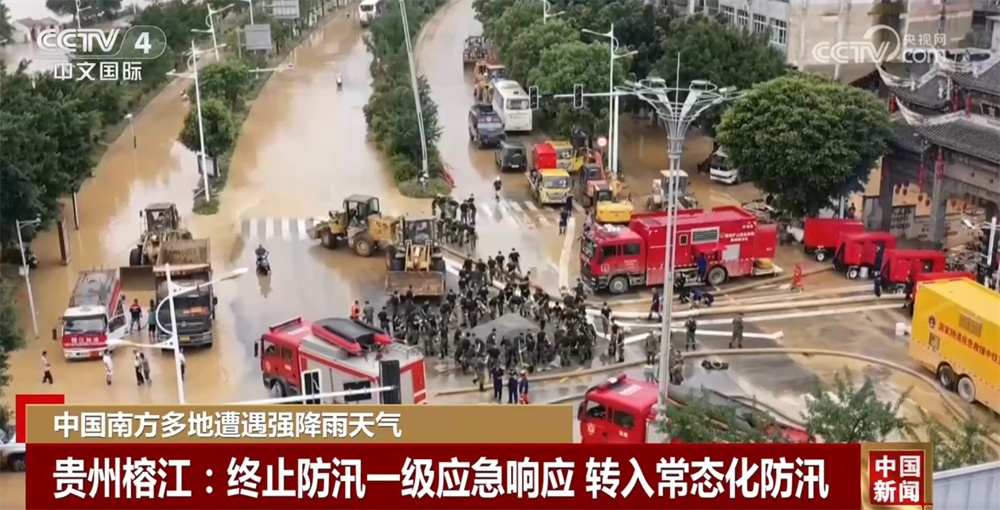随着强降雨天气过程结束,贵州榕江县防汛抗旱指挥部于29日10时终止防汛一级应急响应,转入常态化防汛工作。目前,榕江县都柳江水位在持续回落,清淤工作逐步展开。多方物资也已汇聚榕江,陆续分发。