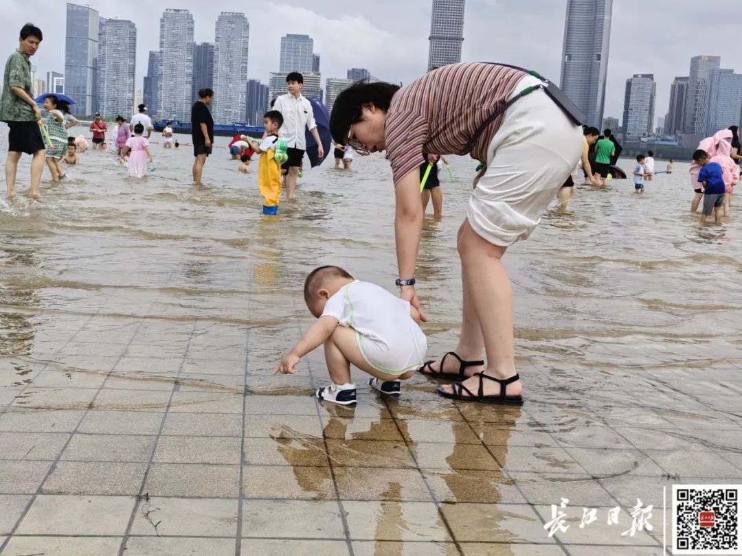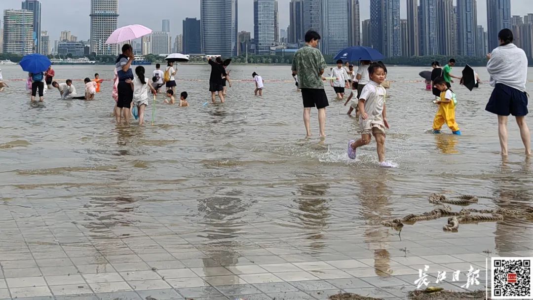 在此值勤的邓师傅正忙碌地劝导、提醒市民注意安全。他看到有人向稍远的水边走去,便立刻大声呼喊制止。邓师傅坦言:“人太多,我们眼睛不敢离开。武汉人骨子里就想亲近长江,我们既要守护这份夏日里的快乐,也要筑牢安全底线。”