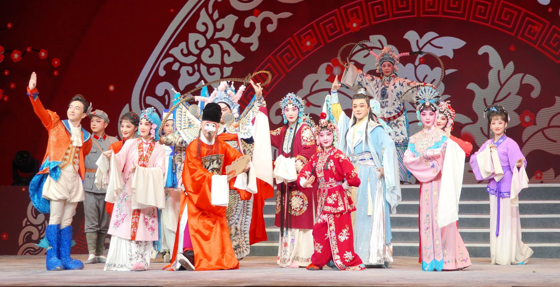 荣获“牡丹花”和“大牡丹花”称号的全体演员在惠民演出现场。通讯员供图