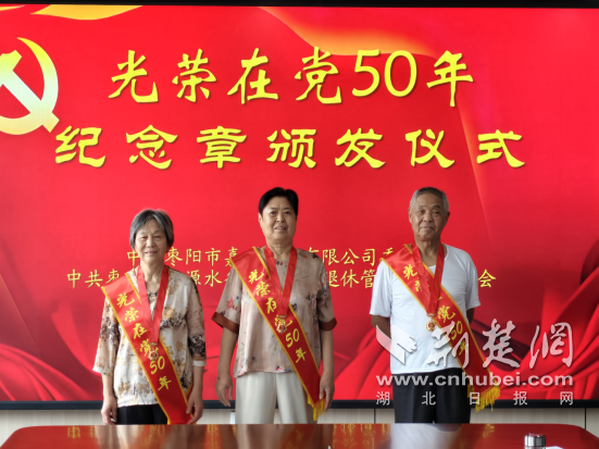 荆楚网(湖北日报网)讯(通讯员 刘体坤 付宏才)6月30日,枣阳市嘉源水务有限公司举行仪式,为3名老党员颁发“光荣在党50年”纪念章并进行座谈。