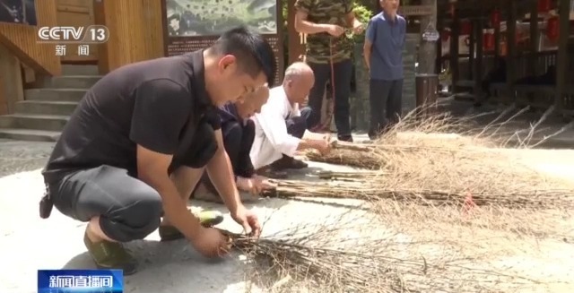 遭遇连续两次洪峰过境侵袭的贵州省黔东南州榕江县,目前供水供电已全面恢复,道路清淤也完成超过90%。榕江大利侗寨距离县城5公里,本次受灾较轻,捆扎竹扫把是当地传统技艺之一,这两天,在村里的统一组织下,大伙儿赶制了300多把竹扫把支援清淤,帮助县里完成最后的难点场地清淤工作。