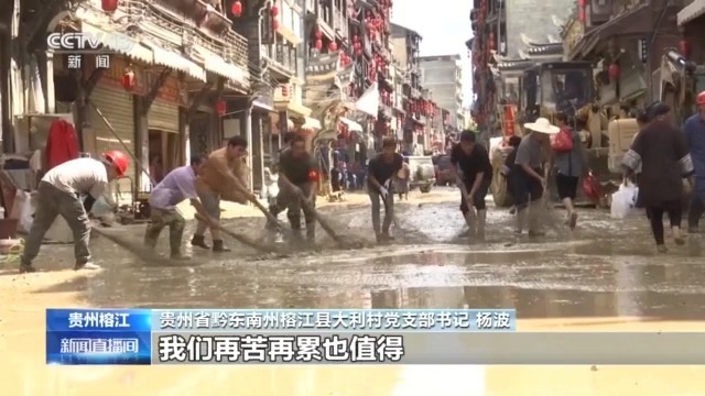贵州省黔东南州榕江县大利村党支部书记 杨波:把咱们侗寨的民宿全部打开,免费让救援人员入住,只要整个县城早日重建家园,早日恢复到正常的生活状态,我们再苦再累也值得。