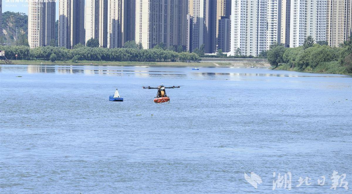 活动现场还模拟了7·16武汉国际渡江节救援保障演练。只见汉台救援专业力量协同作战,模拟了选手体力不支、突发疾病、被水流带偏航道等可能出现的多种紧急情况。水面上,救生艇快速靠近“遇险”人员,救援人员迅速将其拉上船,实施急救。同时,无人机高空巡航,利用热成像与高清摄像头实时监测江面,一旦发现异常,便即刻通知救援船只精准救援,为渡江节筑牢安全防线。